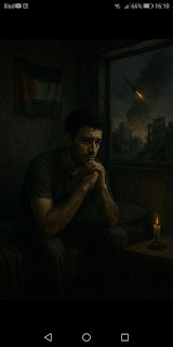 Di notte, riesco a capire quando il drone sta per colpire, il cielo lampeggia di rosso. il colore delle fiamme. Quella vista mi distrae brevemente dal pensare al futuro. Resto sveglio fino alla preghiera dell' alba. Prego, vorrei poter respirare un po' di aria fresca e rinfrescante, ma tutto quello che sento è il fresco profumo di polvere da sparo dopo che il terreno ha tremato come un terremoto. E' il marchio firmato Gaza, misto all' aria fredda.